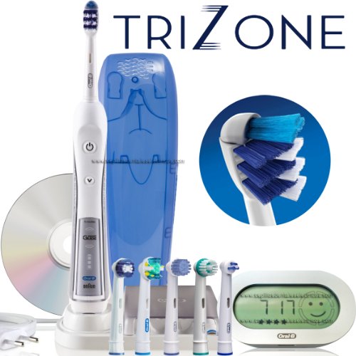 Détails du produit d' Oral B Triumph 5000 TRIZONE - édition limitée "White Box" Brosse à Dents Eléctrique Rechargeable - avec un Smart Guide, (avec 7 brossettes + dvd)